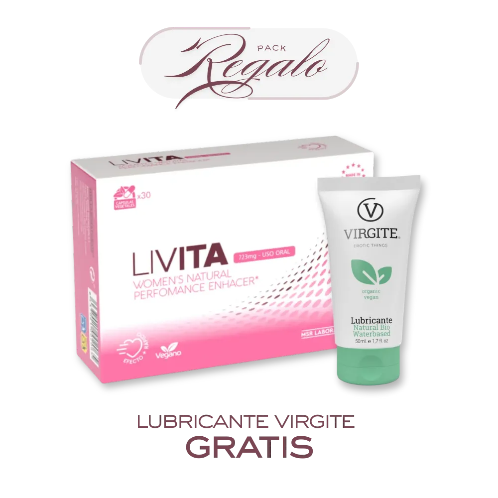Livita, el potenciador natural del deseo femenino, junto con el Lubricante Virgite Bio Waterbased GRATIS.
