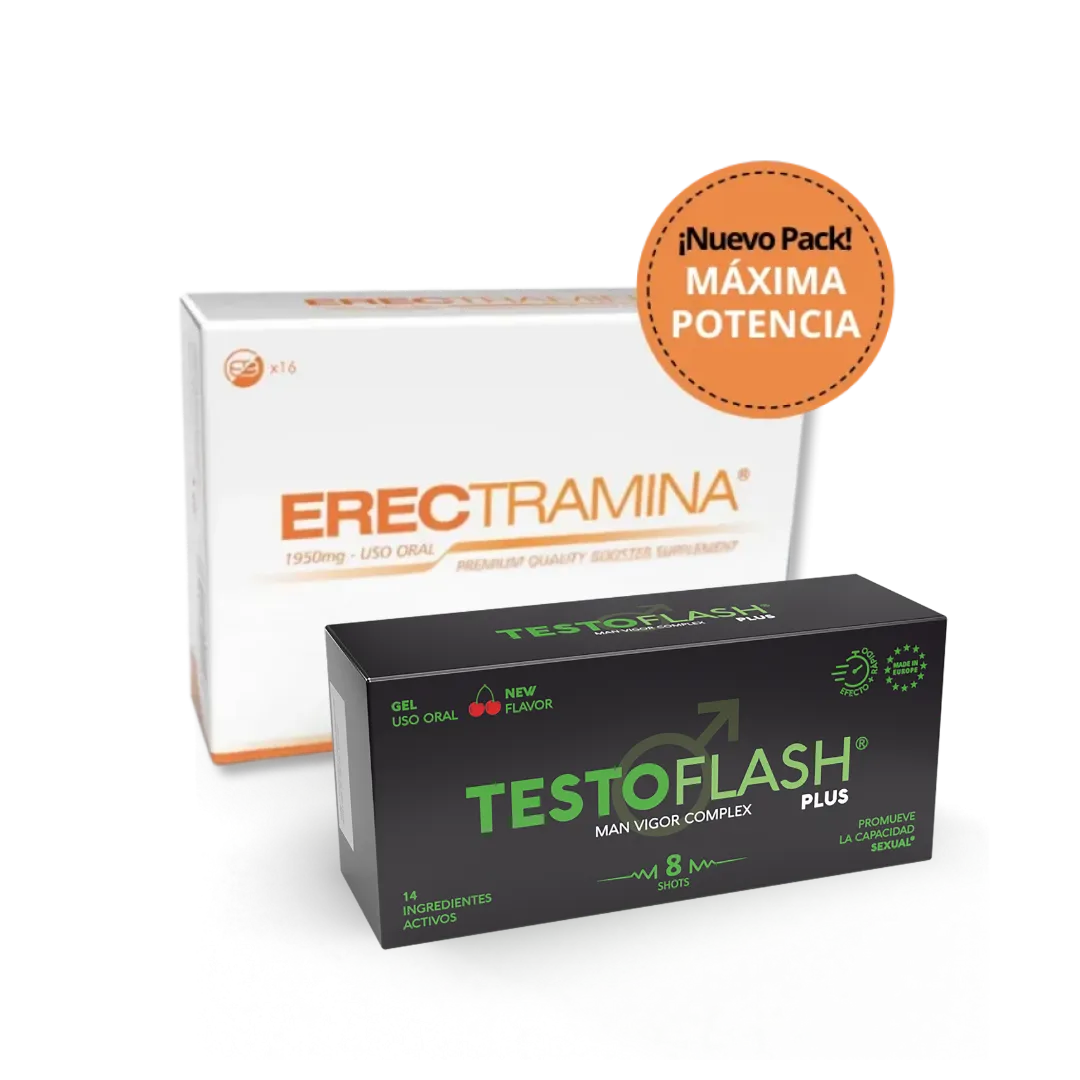 Consigue una Erección más dura y permanente y una mayor Estimulación con el Pack máxima potencia ERECTRAMINA + TESTOFLASH PLUS.