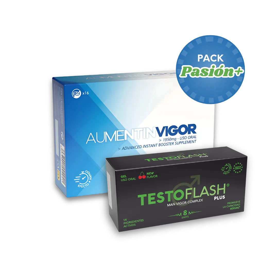 PACK PASIÓN PLUS – AUMENTIN VIGOR & TESTOFLASH PLUS – AHORRO 20% (ENVÍO GRATIS)